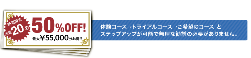 ※上記は、キャンペーン対象コースの、ほんの一例です。通常価格を参考に、お得な組み合わせを考えて見てください。