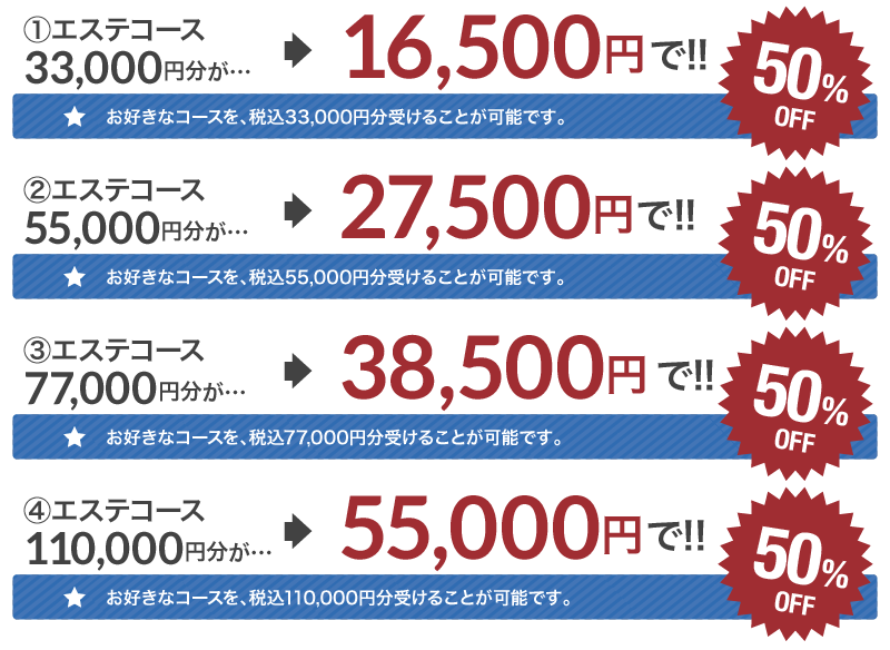 ※上記は、キャンペーン対象コースの、ほんの一例です。通常価格を参考に、お得な組み合わせを考えて見てください。